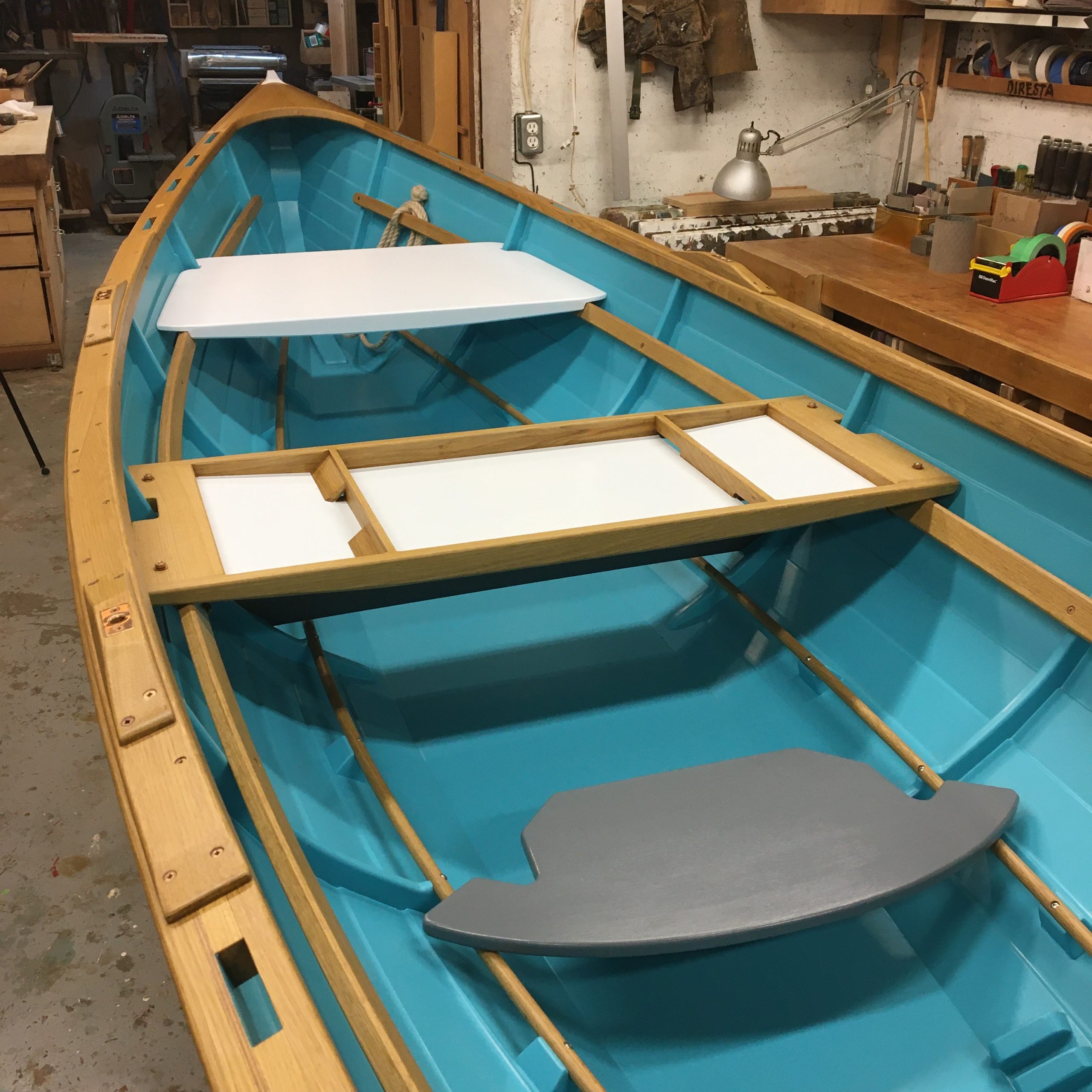 This is a custom design based on the New Jersey Seabright Skiff. They were originally used to harvest salmon from floating traps but eventually developed into a live saving boat as the beaches along the New Jersey shore turned into summer tourist destinations. Their narrow flat bottom was ideal for launching and landing into the surf.